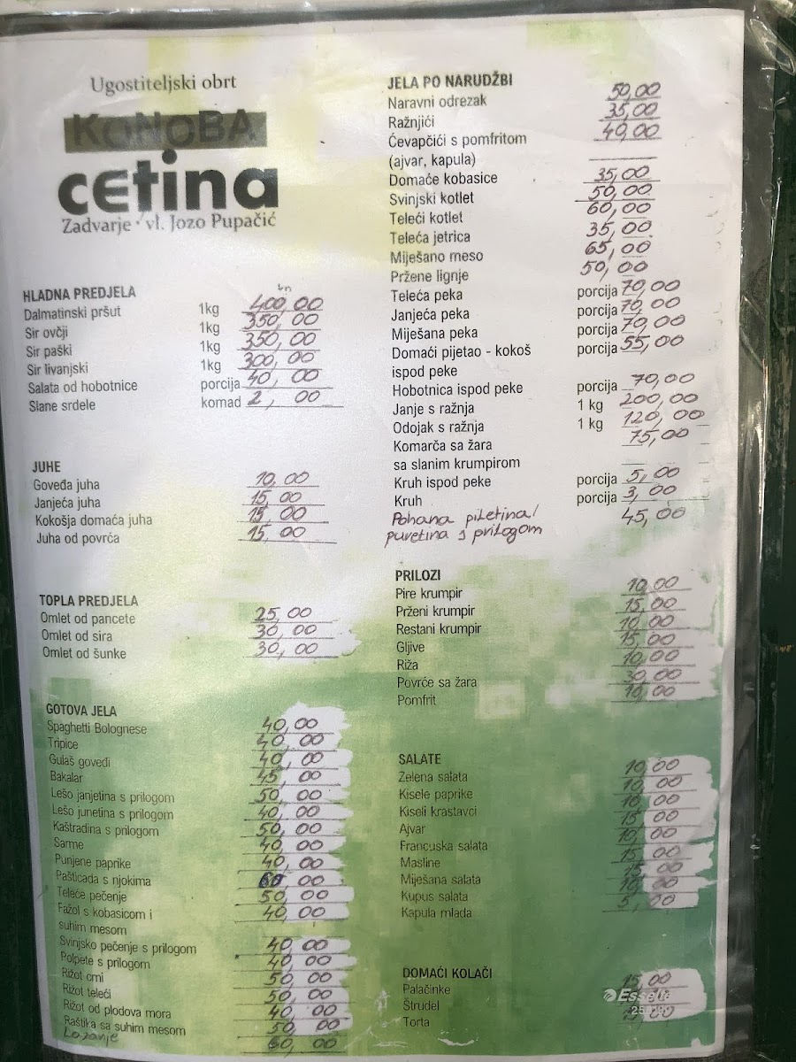 Whether you're in the mood for grilled meats, slow-cooked specialties, or hearty soups, the menu at Konoba Cetina offers an array of dishes that showcase the best of Croatian flavors and culinary traditions.
